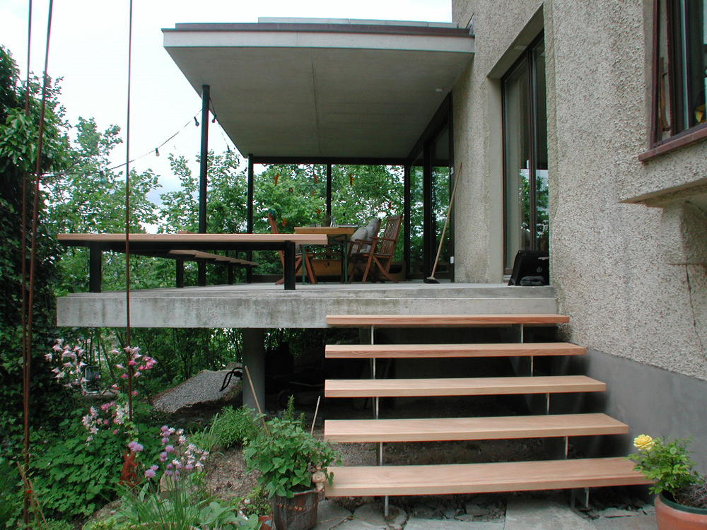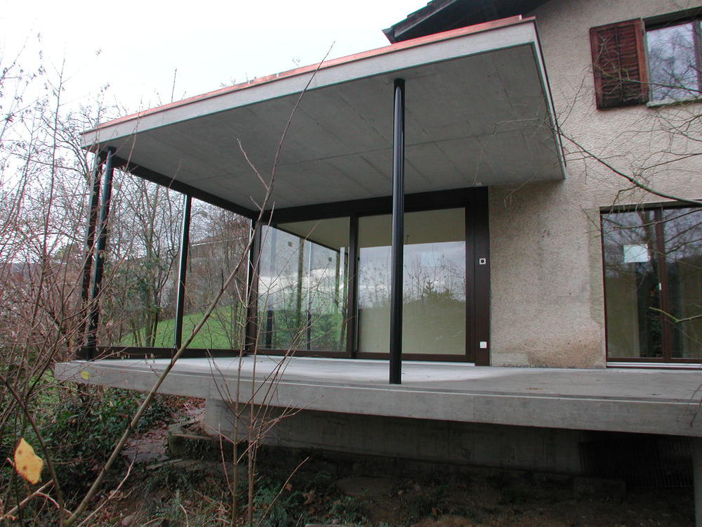 < > haus häfelerweg, nussbaumen kurzdaten Bauherrschaft privat · 2002 · Renovation und Anbau von Terrasse, Wohnzimmer, Küche und Küchenbalkon, Umbau Bäder ·