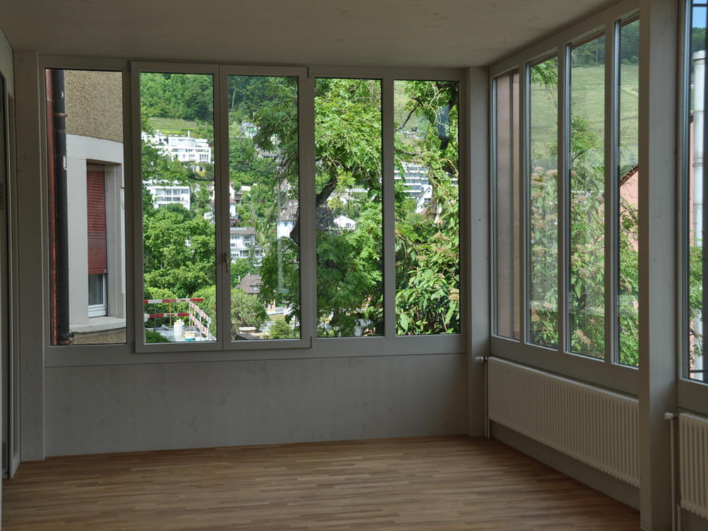 < > wohnhaus sonnengut, baden kurzdaten Bauherrschaft privat · 2013 · Umbau Mehrfamilienhaus, Erweiterung mit Terrasse, Gartenzimmer, Balkon, Loggia und Lift ·